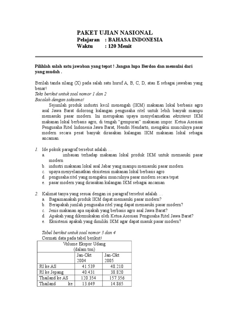 Admin mendapatkan soal dan kunci jawaban ini dari berbagai sumber terpercaya dan admin mengumpulkan semua soal itu dari beberapa sumber tersebut dan dijadikan satu dibawah ini. Soal un bahasa indonesia kls xii (lat 4). Soal un kelas 12 bahasa inggris. Soal kelas 12 semester 1 soal kelas 12 bahasa indonesia soal kelas 12 bahasa inggris soal kelas 12 pkn soal kelas 12. Soal usbn bahasa indonesia 2018full description.
